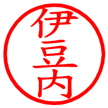 [朱肉の色]を選び、入力窓に“伊豆内”と入力して[生成]ボタンを押すと、印影が更新され、リンクから電子印鑑(デジタル印影)がダウンロードできます。 電子印鑑「伊豆内」の作り方文字表示が変なときや、文字バランスが悪いときは[字形切替]のチェックボックスでON/OFFを切り替え[生成]しなおしてください。 生成される画像は通常の印影「伊豆内.png」と、にじみを表現した少し太めの印影「伊豆内B.png」の背面透過PNG形式2種と、鮮明なPDF形式の印影「伊豆内.pdf」の計3種類です。 朱肉の微妙な色の違いを7色で表現しました。デフォルト(左端)は、JISが定めた朱肉の色のマンセル値(7.5R 5/14)をRGB値(217,66,54)に変換したものになっています。 「電子透かし」にチェックを入れて[生成]ボタンを押すと、タイムスタンプを電子透かしとして埋め込んだセキュアな電子印鑑が作れます。詳細は別ページの「タイムスタンプと電子透かし」でご覧ください。 伊豆内さんの日付印が作れます。「日付スタンプメーカー」は、社内向けの書類に利用されることの多い日付印(データ印)が無料で作れるWebアプリケーションです。中段に日付が入り、上段と下段は、ともに8文字まで文字が入ります。 ![]() 古代文字で落款印が作れます。「落款スタンプメーカー」で作品を引き立たせる落款印が作れます。
