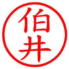 [朱肉の色]を選び、入力窓に“伯井”と入力して[生成]ボタンを押すと、印影が更新され、リンクから電子印鑑(デジタル印影)がダウンロードできます。 電子印鑑「伯井」の作り方文字表示が変なときや、文字バランスが悪いときは[字形切替]のチェックボックスでON/OFFを切り替え[生成]しなおしてください。 生成される画像は通常の印影「伯井.png」と、にじみを表現した少し太めの印影「伯井B.png」の背面透過PNG形式2種と、鮮明なPDF形式の印影「伯井.pdf」の計3種類です。 朱肉の微妙な色の違いを7色で表現しました。デフォルト(左端)は、JISが定めた朱肉の色のマンセル値(7.5R 5/14)をRGB値(217,66,54)に変換したものになっています。 「電子透かし」にチェックを入れて[生成]ボタンを押すと、タイムスタンプを電子透かしとして埋め込んだセキュアな電子印鑑が作れます。詳細は別ページの「タイムスタンプと電子透かし」でご覧ください。 伯井さんの日付印が作れます。「日付スタンプメーカー」は、社内向けの書類に利用されることの多い日付印(データ印)が無料で作れるWebアプリケーションです。中段に日付が入り、上段と下段は、ともに8文字まで文字が入ります。 ![]() 古代文字で落款印が作れます。「落款スタンプメーカー」で作品を引き立たせる落款印が作れます。