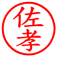 [朱肉の色]を選び、入力窓に“佐孝”と入力して[生成]ボタンを押すと、印影が更新され、リンクから電子印鑑(デジタル印影)がダウンロードできます。 電子印鑑「佐孝」の作り方文字表示が変なときや、文字バランスが悪いときは[字形切替]のチェックボックスでON/OFFを切り替え[生成]しなおしてください。 生成される画像は通常の印影「佐孝.png」と、にじみを表現した少し太めの印影「佐孝B.png」の背面透過PNG形式2種と、鮮明なPDF形式の印影「佐孝.pdf」の計3種類です。 朱肉の微妙な色の違いを7色で表現しました。デフォルト(左端)は、JISが定めた朱肉の色のマンセル値(7.5R 5/14)をRGB値(217,66,54)に変換したものになっています。 「電子透かし」にチェックを入れて[生成]ボタンを押すと、タイムスタンプを電子透かしとして埋め込んだセキュアな電子印鑑が作れます。詳細は別ページの「タイムスタンプと電子透かし」でご覧ください。 佐孝さんの日付印が作れます。「日付スタンプメーカー」は、社内向けの書類に利用されることの多い日付印(データ印)が無料で作れるWebアプリケーションです。中段に日付が入り、上段と下段は、ともに8文字まで文字が入ります。 ![]() 古代文字で落款印が作れます。「落款スタンプメーカー」で作品を引き立たせる落款印が作れます。