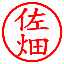 [朱肉の色]を選び、入力窓に“佐畑”と入力して[生成]ボタンを押すと、印影が更新され、リンクから電子印鑑(デジタル印影)がダウンロードできます。 電子印鑑「佐畑」の作り方文字表示が変なときや、文字バランスが悪いときは[字形切替]のチェックボックスでON/OFFを切り替え[生成]しなおしてください。 生成される画像は通常の印影「佐畑.png」と、にじみを表現した少し太めの印影「佐畑B.png」の背面透過PNG形式2種と、鮮明なPDF形式の印影「佐畑.pdf」の計3種類です。 朱肉の微妙な色の違いを7色で表現しました。デフォルト(左端)は、JISが定めた朱肉の色のマンセル値(7.5R 5/14)をRGB値(217,66,54)に変換したものになっています。 「電子透かし」にチェックを入れて[生成]ボタンを押すと、タイムスタンプを電子透かしとして埋め込んだセキュアな電子印鑑が作れます。詳細は別ページの「タイムスタンプと電子透かし」でご覧ください。 佐畑さんの日付印が作れます。「日付スタンプメーカー」は、社内向けの書類に利用されることの多い日付印(データ印)が無料で作れるWebアプリケーションです。中段に日付が入り、上段と下段は、ともに8文字まで文字が入ります。 ![]() 古代文字で落款印が作れます。「落款スタンプメーカー」で作品を引き立たせる落款印が作れます。
