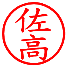 [朱肉の色]を選び、入力窓に“佐高”と入力して[生成]ボタンを押すと、印影が更新され、リンクから電子印鑑(デジタル印影)がダウンロードできます。 電子印鑑「佐高」の作り方文字表示が変なときや、文字バランスが悪いときは[字形切替]のチェックボックスでON/OFFを切り替え[生成]しなおしてください。 生成される画像は通常の印影「佐高.png」と、にじみを表現した少し太めの印影「佐高B.png」の背面透過PNG形式2種と、鮮明なPDF形式の印影「佐高.pdf」の計3種類です。 朱肉の微妙な色の違いを7色で表現しました。デフォルト(左端)は、JISが定めた朱肉の色のマンセル値(7.5R 5/14)をRGB値(217,66,54)に変換したものになっています。 「電子透かし」にチェックを入れて[生成]ボタンを押すと、タイムスタンプを電子透かしとして埋め込んだセキュアな電子印鑑が作れます。詳細は別ページの「タイムスタンプと電子透かし」でご覧ください。 佐高さんの日付印が作れます。「日付スタンプメーカー」は、社内向けの書類に利用されることの多い日付印(データ印)が無料で作れるWebアプリケーションです。中段に日付が入り、上段と下段は、ともに8文字まで文字が入ります。 ![]() 古代文字で落款印が作れます。「落款スタンプメーカー」で作品を引き立たせる落款印が作れます。
