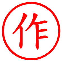 [朱肉の色]を選び、入力窓に“作”と入力して[生成]ボタンを押すと、印影が更新され、リンクから電子印鑑(デジタル印影)がダウンロードできます。 電子印鑑「作」の作り方文字表示が変なときや、文字バランスが悪いときは[字形切替]のチェックボックスでON/OFFを切り替え[生成]しなおしてください。 生成される画像は通常の印影「作.png」と、にじみを表現した少し太めの印影「作B.png」の背面透過PNG形式2種と、鮮明なPDF形式の印影「作.pdf」の計3種類です。 朱肉の微妙な色の違いを7色で表現しました。デフォルト(左端)は、JISが定めた朱肉の色のマンセル値(7.5R 5/14)をRGB値(217,66,54)に変換したものになっています。 「電子透かし」にチェックを入れて[生成]ボタンを押すと、タイムスタンプを電子透かしとして埋め込んだセキュアな電子印鑑が作れます。詳細は別ページの「タイムスタンプと電子透かし」でご覧ください。 作さんの日付印が作れます。「日付スタンプメーカー」は、社内向けの書類に利用されることの多い日付印(データ印)が無料で作れるWebアプリケーションです。中段に日付が入り、上段と下段は、ともに8文字まで文字が入ります。 ![]() 古代文字で落款印が作れます。「落款スタンプメーカー」で作品を引き立たせる落款印が作れます。