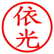 [朱肉の色]を選び、入力窓に“依光”と入力して[生成]ボタンを押すと、印影が更新され、リンクから電子印鑑(デジタル印影)がダウンロードできます。 電子印鑑「依光」の作り方文字表示が変なときや、文字バランスが悪いときは[字形切替]のチェックボックスでON/OFFを切り替え[生成]しなおしてください。 生成される画像は通常の印影「依光.png」と、にじみを表現した少し太めの印影「依光B.png」の背面透過PNG形式2種と、鮮明なPDF形式の印影「依光.pdf」の計3種類です。 朱肉の微妙な色の違いを7色で表現しました。デフォルト(左端)は、JISが定めた朱肉の色のマンセル値(7.5R 5/14)をRGB値(217,66,54)に変換したものになっています。 「電子透かし」にチェックを入れて[生成]ボタンを押すと、タイムスタンプを電子透かしとして埋め込んだセキュアな電子印鑑が作れます。詳細は別ページの「タイムスタンプと電子透かし」でご覧ください。 依光さんの日付印が作れます。「日付スタンプメーカー」は、社内向けの書類に利用されることの多い日付印(データ印)が無料で作れるWebアプリケーションです。中段に日付が入り、上段と下段は、ともに8文字まで文字が入ります。 ![]() 古代文字で落款印が作れます。「落款スタンプメーカー」で作品を引き立たせる落款印が作れます。