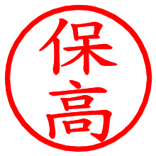 [朱肉の色]を選び、入力窓に“保高”と入力して[生成]ボタンを押すと、印影が更新され、リンクから電子印鑑(デジタル印影)がダウンロードできます。 電子印鑑「保高」の作り方文字表示が変なときや、文字バランスが悪いときは[字形切替]のチェックボックスでON/OFFを切り替え[生成]しなおしてください。 生成される画像は通常の印影「保高.png」と、にじみを表現した少し太めの印影「保高B.png」の背面透過PNG形式2種と、鮮明なPDF形式の印影「保高.pdf」の計3種類です。 朱肉の微妙な色の違いを7色で表現しました。デフォルト(左端)は、JISが定めた朱肉の色のマンセル値(7.5R 5/14)をRGB値(217,66,54)に変換したものになっています。 「電子透かし」にチェックを入れて[生成]ボタンを押すと、タイムスタンプを電子透かしとして埋め込んだセキュアな電子印鑑が作れます。詳細は別ページの「タイムスタンプと電子透かし」でご覧ください。 保高さんの日付印が作れます。「日付スタンプメーカー」は、社内向けの書類に利用されることの多い日付印(データ印)が無料で作れるWebアプリケーションです。中段に日付が入り、上段と下段は、ともに8文字まで文字が入ります。 ![]() 古代文字で落款印が作れます。「落款スタンプメーカー」で作品を引き立たせる落款印が作れます。