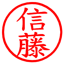 [朱肉の色]を選び、入力窓に“信藤”と入力して[生成]ボタンを押すと、印影が更新され、リンクから電子印鑑(デジタル印影)がダウンロードできます。 電子印鑑「信藤」の作り方文字表示が変なときや、文字バランスが悪いときは[字形切替]のチェックボックスでON/OFFを切り替え[生成]しなおしてください。 生成される画像は通常の印影「信藤.png」と、にじみを表現した少し太めの印影「信藤B.png」の背面透過PNG形式2種と、鮮明なPDF形式の印影「信藤.pdf」の計3種類です。 朱肉の微妙な色の違いを7色で表現しました。デフォルト(左端)は、JISが定めた朱肉の色のマンセル値(7.5R 5/14)をRGB値(217,66,54)に変換したものになっています。 「電子透かし」にチェックを入れて[生成]ボタンを押すと、タイムスタンプを電子透かしとして埋め込んだセキュアな電子印鑑が作れます。詳細は別ページの「タイムスタンプと電子透かし」でご覧ください。 信藤さんの日付印が作れます。「日付スタンプメーカー」は、社内向けの書類に利用されることの多い日付印(データ印)が無料で作れるWebアプリケーションです。中段に日付が入り、上段と下段は、ともに8文字まで文字が入ります。 ![]() 古代文字で落款印が作れます。「落款スタンプメーカー」で作品を引き立たせる落款印が作れます。