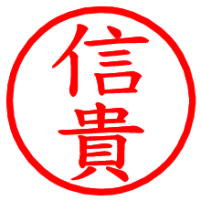 [朱肉の色]を選び、入力窓に“信貴”と入力して[生成]ボタンを押すと、印影が更新され、リンクから電子印鑑(デジタル印影)がダウンロードできます。 電子印鑑「信貴」の作り方文字表示が変なときや、文字バランスが悪いときは[字形切替]のチェックボックスでON/OFFを切り替え[生成]しなおしてください。 生成される画像は通常の印影「信貴.png」と、にじみを表現した少し太めの印影「信貴B.png」の背面透過PNG形式2種と、鮮明なPDF形式の印影「信貴.pdf」の計3種類です。 朱肉の微妙な色の違いを7色で表現しました。デフォルト(左端)は、JISが定めた朱肉の色のマンセル値(7.5R 5/14)をRGB値(217,66,54)に変換したものになっています。 「電子透かし」にチェックを入れて[生成]ボタンを押すと、タイムスタンプを電子透かしとして埋め込んだセキュアな電子印鑑が作れます。詳細は別ページの「タイムスタンプと電子透かし」でご覧ください。 信貴さんの日付印が作れます。「日付スタンプメーカー」は、社内向けの書類に利用されることの多い日付印(データ印)が無料で作れるWebアプリケーションです。中段に日付が入り、上段と下段は、ともに8文字まで文字が入ります。 ![]() 古代文字で落款印が作れます。「落款スタンプメーカー」で作品を引き立たせる落款印が作れます。