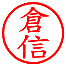 [朱肉の色]を選び、入力窓に“倉信”と入力して[生成]ボタンを押すと、印影が更新され、リンクから電子印鑑(デジタル印影)がダウンロードできます。 電子印鑑「倉信」の作り方文字表示が変なときや、文字バランスが悪いときは[字形切替]のチェックボックスでON/OFFを切り替え[生成]しなおしてください。 生成される画像は通常の印影「倉信.png」と、にじみを表現した少し太めの印影「倉信B.png」の背面透過PNG形式2種と、鮮明なPDF形式の印影「倉信.pdf」の計3種類です。 朱肉の微妙な色の違いを7色で表現しました。デフォルト(左端)は、JISが定めた朱肉の色のマンセル値(7.5R 5/14)をRGB値(217,66,54)に変換したものになっています。 「電子透かし」にチェックを入れて[生成]ボタンを押すと、タイムスタンプを透かしとして埋め込んだセキュアな電子印鑑が作れます。詳細は別ページの「電子透かしとタイムスタンプ」でご覧ください。 倉信さんの日付印が作れます。「日付スタンプメーカー」は、社内向けの書類に利用されることの多い日付印(データ印)が無料で作れるWebアプリケーションです。中段に日付が入り、上段と下段は、ともに8文字まで文字が入ります。 ![]() 古代文字で落款印が作れます。「落款スタンプメーカー」で作品を引き立たせる落款印が作れます。