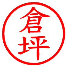 [朱肉の色]を選び、入力窓に“倉坪”と入力して[生成]ボタンを押すと、印影が更新され、リンクから電子印鑑(デジタル印影)がダウンロードできます。 電子印鑑「倉坪」の作り方文字表示が変なときや、文字バランスが悪いときは[字形切替]のチェックボックスでON/OFFを切り替え[生成]しなおしてください。 生成される画像は通常の印影「倉坪.png」と、にじみを表現した少し太めの印影「倉坪B.png」の背面透過PNG形式2種と、鮮明なPDF形式の印影「倉坪.pdf」の計3種類です。 朱肉の微妙な色の違いを7色で表現しました。デフォルト(左端)は、JISが定めた朱肉の色のマンセル値(7.5R 5/14)をRGB値(217,66,54)に変換したものになっています。 「電子透かし」にチェックを入れて[生成]ボタンを押すと、タイムスタンプを電子透かしとして埋め込んだセキュアな電子印鑑が作れます。詳細は別ページの「タイムスタンプと電子透かし」でご覧ください。 倉坪さんの日付印が作れます。「日付スタンプメーカー」は、社内向けの書類に利用されることの多い日付印(データ印)が無料で作れるWebアプリケーションです。中段に日付が入り、上段と下段は、ともに8文字まで文字が入ります。 ![]() 古代文字で落款印が作れます。「落款スタンプメーカー」で作品を引き立たせる落款印が作れます。