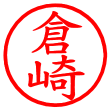 [朱肉の色]を選び、入力窓に“倉崎”と入力して[生成]ボタンを押すと、印影が更新され、リンクから電子印鑑(デジタル印影)がダウンロードできます。 電子印鑑「倉崎」の作り方文字表示が変なときや、文字バランスが悪いときは[字形切替]のチェックボックスでON/OFFを切り替え[生成]しなおしてください。 生成される画像は通常の印影「倉崎.png」と、にじみを表現した少し太めの印影「倉崎B.png」の背面透過PNG形式2種と、鮮明なPDF形式の印影「倉崎.pdf」の計3種類です。 朱肉の微妙な色の違いを7色で表現しました。デフォルト(左端)は、JISが定めた朱肉の色のマンセル値(7.5R 5/14)をRGB値(217,66,54)に変換したものになっています。 「電子透かし」にチェックを入れて[生成]ボタンを押すと、タイムスタンプを電子透かしとして埋め込んだセキュアな電子印鑑が作れます。詳細は別ページの「タイムスタンプと電子透かし」でご覧ください。 倉崎さんの日付印が作れます。「日付スタンプメーカー」は、社内向けの書類に利用されることの多い日付印(データ印)が無料で作れるWebアプリケーションです。中段に日付が入り、上段と下段は、ともに8文字まで文字が入ります。 ![]() 古代文字で落款印が作れます。「落款スタンプメーカー」で作品を引き立たせる落款印が作れます。