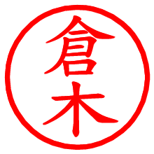 [朱肉の色]を選び、入力窓に“倉木”と入力して[生成]ボタンを押すと、印影が更新され、リンクから電子印鑑(デジタル印影)がダウンロードできます。 電子印鑑「倉木」の作り方文字表示が変なときや、文字バランスが悪いときは[字形切替]のチェックボックスでON/OFFを切り替え[生成]しなおしてください。 生成される画像は通常の印影「倉木.png」と、にじみを表現した少し太めの印影「倉木B.png」の背面透過PNG形式2種と、鮮明なPDF形式の印影「倉木.pdf」の計3種類です。 朱肉の微妙な色の違いを7色で表現しました。デフォルト(左端)は、JISが定めた朱肉の色のマンセル値(7.5R 5/14)をRGB値(217,66,54)に変換したものになっています。 「電子透かし」にチェックを入れて[生成]ボタンを押すと、タイムスタンプを電子透かしとして埋め込んだセキュアな電子印鑑が作れます。詳細は別ページの「タイムスタンプと電子透かし」でご覧ください。 倉木さんの日付印が作れます。「日付スタンプメーカー」は、社内向けの書類に利用されることの多い日付印(データ印)が無料で作れるWebアプリケーションです。中段に日付が入り、上段と下段は、ともに8文字まで文字が入ります。 ![]() 古代文字で落款印が作れます。「落款スタンプメーカー」で作品を引き立たせる落款印が作れます。