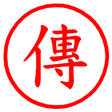 [朱肉の色]を選び、入力窓に“傳”と入力して[生成]ボタンを押すと、印影が更新され、リンクから電子印鑑(デジタル印影)がダウンロードできます。 電子印鑑「傳」の作り方文字表示が変なときや、文字バランスが悪いときは[字形切替]のチェックボックスでON/OFFを切り替え[生成]しなおしてください。 生成される画像は通常の印影「傳.png」と、にじみを表現した少し太めの印影「傳B.png」の背面透過PNG形式2種と、鮮明なPDF形式の印影「傳.pdf」の計3種類です。 朱肉の微妙な色の違いを7色で表現しました。デフォルト(左端)は、JISが定めた朱肉の色のマンセル値(7.5R 5/14)をRGB値(217,66,54)に変換したものになっています。 「電子透かし」にチェックを入れて[生成]ボタンを押すと、タイムスタンプを電子透かしとして埋め込んだセキュアな電子印鑑が作れます。詳細は別ページの「タイムスタンプと電子透かし」でご覧ください。 傳さんの日付印が作れます。「日付スタンプメーカー」は、社内向けの書類に利用されることの多い日付印(データ印)が無料で作れるWebアプリケーションです。中段に日付が入り、上段と下段は、ともに8文字まで文字が入ります。 ![]() 古代文字で落款印が作れます。「落款スタンプメーカー」で作品を引き立たせる落款印が作れます。
