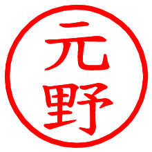 [朱肉の色]を選び、入力窓に“元野”と入力して[生成]ボタンを押すと、印影が更新され、リンクから電子印鑑(デジタル印影)がダウンロードできます。 電子印鑑「元野」の作り方文字表示が変なときや、文字バランスが悪いときは[字形切替]のチェックボックスでON/OFFを切り替え[生成]しなおしてください。 生成される画像は通常の印影「元野.png」と、にじみを表現した少し太めの印影「元野B.png」の背面透過PNG形式2種と、鮮明なPDF形式の印影「元野.pdf」の計3種類です。 朱肉の微妙な色の違いを7色で表現しました。デフォルト(左端)は、JISが定めた朱肉の色のマンセル値(7.5R 5/14)をRGB値(217,66,54)に変換したものになっています。 「電子透かし」にチェックを入れて[生成]ボタンを押すと、タイムスタンプを電子透かしとして埋め込んだセキュアな電子印鑑が作れます。詳細は別ページの「タイムスタンプと電子透かし」でご覧ください。 元野さんの日付印が作れます。「日付スタンプメーカー」は、社内向けの書類に利用されることの多い日付印(データ印)が無料で作れるWebアプリケーションです。中段に日付が入り、上段と下段は、ともに8文字まで文字が入ります。 ![]() 古代文字で落款印が作れます。「落款スタンプメーカー」で作品を引き立たせる落款印が作れます。