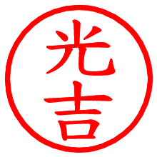 [朱肉の色]を選び、入力窓に“光吉”と入力して[生成]ボタンを押すと、印影が更新され、リンクから電子印鑑(デジタル印影)がダウンロードできます。 電子印鑑「光吉」の作り方文字表示が変なときや、文字バランスが悪いときは[字形切替]のチェックボックスでON/OFFを切り替え[生成]しなおしてください。 生成される画像は通常の印影「光吉.png」と、にじみを表現した少し太めの印影「光吉B.png」の背面透過PNG形式2種と、鮮明なPDF形式の印影「光吉.pdf」の計3種類です。 朱肉の微妙な色の違いを7色で表現しました。デフォルト(左端)は、JISが定めた朱肉の色のマンセル値(7.5R 5/14)をRGB値(217,66,54)に変換したものになっています。 「電子透かし」にチェックを入れて[生成]ボタンを押すと、タイムスタンプを電子透かしとして埋め込んだセキュアな電子印鑑が作れます。詳細は別ページの「タイムスタンプと電子透かし」でご覧ください。 光吉さんの日付印が作れます。「日付スタンプメーカー」は、社内向けの書類に利用されることの多い日付印(データ印)が無料で作れるWebアプリケーションです。中段に日付が入り、上段と下段は、ともに8文字まで文字が入ります。 ![]() 古代文字で落款印が作れます。「落款スタンプメーカー」で作品を引き立たせる落款印が作れます。