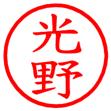 [朱肉の色]を選び、入力窓に“光野”と入力して[生成]ボタンを押すと、印影が更新され、リンクから電子印鑑(デジタル印影)がダウンロードできます。 電子印鑑「光野」の作り方文字表示が変なときや、文字バランスが悪いときは[字形切替]のチェックボックスでON/OFFを切り替え[生成]しなおしてください。 生成される画像は通常の印影「光野.png」と、にじみを表現した少し太めの印影「光野B.png」の背面透過PNG形式2種と、鮮明なPDF形式の印影「光野.pdf」の計3種類です。 朱肉の微妙な色の違いを7色で表現しました。デフォルト(左端)は、JISが定めた朱肉の色のマンセル値(7.5R 5/14)をRGB値(217,66,54)に変換したものになっています。 「電子透かし」にチェックを入れて[生成]ボタンを押すと、タイムスタンプを電子透かしとして埋め込んだセキュアな電子印鑑が作れます。詳細は別ページの「タイムスタンプと電子透かし」でご覧ください。 光野さんの日付印が作れます。「日付スタンプメーカー」は、社内向けの書類に利用されることの多い日付印(データ印)が無料で作れるWebアプリケーションです。中段に日付が入り、上段と下段は、ともに8文字まで文字が入ります。 ![]() 古代文字で落款印が作れます。「落款スタンプメーカー」で作品を引き立たせる落款印が作れます。