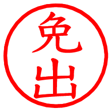 [朱肉の色]を選び、入力窓に“免出”と入力して[生成]ボタンを押すと、印影が更新され、リンクから電子印鑑(デジタル印影)がダウンロードできます。 電子印鑑「免出」の作り方文字表示が変なときや、文字バランスが悪いときは[字形切替]のチェックボックスでON/OFFを切り替え[生成]しなおしてください。 生成される画像は通常の印影「免出.png」と、にじみを表現した少し太めの印影「免出B.png」の背面透過PNG形式2種と、鮮明なPDF形式の印影「免出.pdf」の計3種類です。 朱肉の微妙な色の違いを7色で表現しました。デフォルト(左端)は、JISが定めた朱肉の色のマンセル値(7.5R 5/14)をRGB値(217,66,54)に変換したものになっています。 「電子透かし」にチェックを入れて[生成]ボタンを押すと、タイムスタンプを電子透かしとして埋め込んだセキュアな電子印鑑が作れます。詳細は別ページの「タイムスタンプと電子透かし」でご覧ください。 免出さんの日付印が作れます。「日付スタンプメーカー」は、社内向けの書類に利用されることの多い日付印(データ印)が無料で作れるWebアプリケーションです。中段に日付が入り、上段と下段は、ともに8文字まで文字が入ります。 ![]() 古代文字で落款印が作れます。「落款スタンプメーカー」で作品を引き立たせる落款印が作れます。