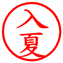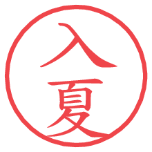 [朱肉の色]を選び、入力窓に“入夏”と入力して[生成]ボタンを押すと、印影が更新され、リンクから電子印鑑(デジタル印影)がダウンロードできます。 電子印鑑「入夏」の作り方文字表示が変なときや、文字バランスが悪いときは[字形切替]のチェックボックスでON/OFFを切り替え[生成]しなおしてください。 生成される画像は通常の印影「入夏.png」と、にじみを表現した少し太めの印影「入夏B.png」の背面透過PNG形式2種と、鮮明なPDF形式の印影「入夏.pdf」の計3種類です。 朱肉の微妙な色の違いを7色で表現しました。デフォルト(左端)は、JISが定めた朱肉の色のマンセル値(7.5R 5/14)をRGB値(217,66,54)に変換したものになっています。 「電子透かし」にチェックを入れて[生成]ボタンを押すと、タイムスタンプを電子透かしとして埋め込んだセキュアな電子印鑑が作れます。詳細は別ページの「タイムスタンプと電子透かし」でご覧ください。 入夏さんの日付印が作れます。「日付スタンプメーカー」は、社内向けの書類に利用されることの多い日付印(データ印)が無料で作れるWebアプリケーションです。中段に日付が入り、上段と下段は、ともに8文字まで文字が入ります。 ![]() 古代文字で落款印が作れます。「落款スタンプメーカー」で作品を引き立たせる落款印が作れます。