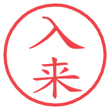 [朱肉の色]を選び、入力窓に“入来”と入力して[生成]ボタンを押すと、印影が更新され、リンクから電子印鑑(デジタル印影)がダウンロードできます。 電子印鑑「入来」の作り方文字表示が変なときや、文字バランスが悪いときは[字形切替]のチェックボックスでON/OFFを切り替え[生成]しなおしてください。 生成される画像は通常の印影「入来.png」と、にじみを表現した少し太めの印影「入来B.png」の背面透過PNG形式2種と、鮮明なPDF形式の印影「入来.pdf」の計3種類です。 朱肉の微妙な色の違いを7色で表現しました。デフォルト(左端)は、JISが定めた朱肉の色のマンセル値(7.5R 5/14)をRGB値(217,66,54)に変換したものになっています。 「電子透かし」にチェックを入れて[生成]ボタンを押すと、タイムスタンプを電子透かしとして埋め込んだセキュアな電子印鑑が作れます。詳細は別ページの「タイムスタンプと電子透かし」でご覧ください。 入来さんの日付印が作れます。「日付スタンプメーカー」は、社内向けの書類に利用されることの多い日付印(データ印)が無料で作れるWebアプリケーションです。中段に日付が入り、上段と下段は、ともに8文字まで文字が入ります。 ![]() 古代文字で落款印が作れます。「落款スタンプメーカー」で作品を引き立たせる落款印が作れます。