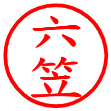 [朱肉の色]を選び、入力窓に“六笠”と入力して[生成]ボタンを押すと、印影が更新され、リンクから電子印鑑(デジタル印影)がダウンロードできます。 電子印鑑「六笠」の作り方文字表示が変なときや、文字バランスが悪いときは[字形切替]のチェックボックスでON/OFFを切り替え[生成]しなおしてください。 生成される画像は通常の印影「六笠.png」と、にじみを表現した少し太めの印影「六笠B.png」の背面透過PNG形式2種と、鮮明なPDF形式の印影「六笠.pdf」の計3種類です。 朱肉の微妙な色の違いを7色で表現しました。デフォルト(左端)は、JISが定めた朱肉の色のマンセル値(7.5R 5/14)をRGB値(217,66,54)に変換したものになっています。 「電子透かし」にチェックを入れて[生成]ボタンを押すと、タイムスタンプを電子透かしとして埋め込んだセキュアな電子印鑑が作れます。詳細は別ページの「タイムスタンプと電子透かし」でご覧ください。 六笠さんの日付印が作れます。「日付スタンプメーカー」は、社内向けの書類に利用されることの多い日付印(データ印)が無料で作れるWebアプリケーションです。中段に日付が入り、上段と下段は、ともに8文字まで文字が入ります。 ![]() 古代文字で落款印が作れます。「落款スタンプメーカー」で作品を引き立たせる落款印が作れます。