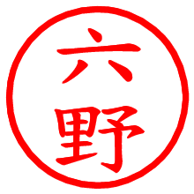 [朱肉の色]を選び、入力窓に“六野”と入力して[生成]ボタンを押すと、印影が更新され、リンクから電子印鑑(デジタル印影)がダウンロードできます。 電子印鑑「六野」の作り方文字表示が変なときや、文字バランスが悪いときは[字形切替]のチェックボックスでON/OFFを切り替え[生成]しなおしてください。 生成される画像は通常の印影「六野.png」と、にじみを表現した少し太めの印影「六野B.png」の背面透過PNG形式2種と、鮮明なPDF形式の印影「六野.pdf」の計3種類です。 朱肉の微妙な色の違いを7色で表現しました。デフォルト(左端)は、JISが定めた朱肉の色のマンセル値(7.5R 5/14)をRGB値(217,66,54)に変換したものになっています。 「電子透かし」にチェックを入れて[生成]ボタンを押すと、タイムスタンプを電子透かしとして埋め込んだセキュアな電子印鑑が作れます。詳細は別ページの「タイムスタンプと電子透かし」でご覧ください。 六野さんの日付印が作れます。「日付スタンプメーカー」は、社内向けの書類に利用されることの多い日付印(データ印)が無料で作れるWebアプリケーションです。中段に日付が入り、上段と下段は、ともに8文字まで文字が入ります。 ![]() 古代文字で落款印が作れます。「落款スタンプメーカー」で作品を引き立たせる落款印が作れます。