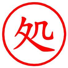 [朱肉の色]を選び、入力窓に“処”と入力して[生成]ボタンを押すと、印影が更新され、リンクから電子印鑑(デジタル印影)がダウンロードできます。 電子印鑑「処」の作り方文字表示が変なときや、文字バランスが悪いときは[字形切替]のチェックボックスでON/OFFを切り替え[生成]しなおしてください。 生成される画像は通常の印影「処.png」と、にじみを表現した少し太めの印影「処B.png」の背面透過PNG形式2種と、鮮明なPDF形式の印影「処.pdf」の計3種類です。 朱肉の微妙な色の違いを7色で表現しました。デフォルト(左端)は、JISが定めた朱肉の色のマンセル値(7.5R 5/14)をRGB値(217,66,54)に変換したものになっています。 「電子透かし」にチェックを入れて[生成]ボタンを押すと、タイムスタンプを電子透かしとして埋め込んだセキュアな電子印鑑が作れます。詳細は別ページの「タイムスタンプと電子透かし」でご覧ください。 処さんの日付印が作れます。「日付スタンプメーカー」は、社内向けの書類に利用されることの多い日付印(データ印)が無料で作れるWebアプリケーションです。中段に日付が入り、上段と下段は、ともに8文字まで文字が入ります。 ![]() 古代文字で落款印が作れます。「落款スタンプメーカー」で作品を引き立たせる落款印が作れます。