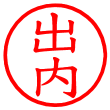 [朱肉の色]を選び、入力窓に“出内”と入力して[生成]ボタンを押すと、印影が更新され、リンクから電子印鑑(デジタル印影)がダウンロードできます。 電子印鑑「出内」の作り方文字表示が変なときや、文字バランスが悪いときは[字形切替]のチェックボックスでON/OFFを切り替え[生成]しなおしてください。 生成される画像は通常の印影「出内.png」と、にじみを表現した少し太めの印影「出内B.png」の背面透過PNG形式2種と、鮮明なPDF形式の印影「出内.pdf」の計3種類です。 朱肉の微妙な色の違いを7色で表現しました。デフォルト(左端)は、JISが定めた朱肉の色のマンセル値(7.5R 5/14)をRGB値(217,66,54)に変換したものになっています。 「電子透かし」にチェックを入れて[生成]ボタンを押すと、タイムスタンプを電子透かしとして埋め込んだセキュアな電子印鑑が作れます。詳細は別ページの「タイムスタンプと電子透かし」でご覧ください。 出内さんの日付印が作れます。「日付スタンプメーカー」は、社内向けの書類に利用されることの多い日付印(データ印)が無料で作れるWebアプリケーションです。中段に日付が入り、上段と下段は、ともに8文字まで文字が入ります。 ![]() 古代文字で落款印が作れます。「落款スタンプメーカー」で作品を引き立たせる落款印が作れます。