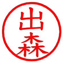 [朱肉の色]を選び、入力窓に“出森”と入力して[生成]ボタンを押すと、印影が更新され、リンクから電子印鑑(デジタル印影)がダウンロードできます。 電子印鑑「出森」の作り方文字表示が変なときや、文字バランスが悪いときは[字形切替]のチェックボックスでON/OFFを切り替え[生成]しなおしてください。 生成される画像は通常の印影「出森.png」と、にじみを表現した少し太めの印影「出森B.png」の背面透過PNG形式2種と、鮮明なPDF形式の印影「出森.pdf」の計3種類です。 朱肉の微妙な色の違いを7色で表現しました。デフォルト(左端)は、JISが定めた朱肉の色のマンセル値(7.5R 5/14)をRGB値(217,66,54)に変換したものになっています。 「電子透かし」にチェックを入れて[生成]ボタンを押すと、タイムスタンプを電子透かしとして埋め込んだセキュアな電子印鑑が作れます。詳細は別ページの「タイムスタンプと電子透かし」でご覧ください。 出森さんの日付印が作れます。「日付スタンプメーカー」は、社内向けの書類に利用されることの多い日付印(データ印)が無料で作れるWebアプリケーションです。中段に日付が入り、上段と下段は、ともに8文字まで文字が入ります。 ![]() 古代文字で落款印が作れます。「落款スタンプメーカー」で作品を引き立たせる落款印が作れます。