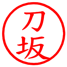 [朱肉の色]を選び、入力窓に“刀坂”と入力して[生成]ボタンを押すと、印影が更新され、リンクから電子印鑑(デジタル印影)がダウンロードできます。 電子印鑑「刀坂」の作り方文字表示が変なときや、文字バランスが悪いときは[字形切替]のチェックボックスでON/OFFを切り替え[生成]しなおしてください。 生成される画像は通常の印影「刀坂.png」と、にじみを表現した少し太めの印影「刀坂B.png」の背面透過PNG形式2種と、鮮明なPDF形式の印影「刀坂.pdf」の計3種類です。 朱肉の微妙な色の違いを7色で表現しました。デフォルト(左端)は、JISが定めた朱肉の色のマンセル値(7.5R 5/14)をRGB値(217,66,54)に変換したものになっています。 「電子透かし」にチェックを入れて[生成]ボタンを押すと、タイムスタンプを電子透かしとして埋め込んだセキュアな電子印鑑が作れます。詳細は別ページの「タイムスタンプと電子透かし」でご覧ください。 刀坂さんの日付印が作れます。「日付スタンプメーカー」は、社内向けの書類に利用されることの多い日付印(データ印)が無料で作れるWebアプリケーションです。中段に日付が入り、上段と下段は、ともに8文字まで文字が入ります。 ![]() 古代文字で落款印が作れます。「落款スタンプメーカー」で作品を引き立たせる落款印が作れます。