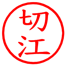 [朱肉の色]を選び、入力窓に“切江”と入力して[生成]ボタンを押すと、印影が更新され、リンクから電子印鑑(デジタル印影)がダウンロードできます。 電子印鑑「切江」の作り方文字表示が変なときや、文字バランスが悪いときは[字形切替]のチェックボックスでON/OFFを切り替え[生成]しなおしてください。 生成される画像は通常の印影「切江.png」と、にじみを表現した少し太めの印影「切江B.png」の背面透過PNG形式2種と、鮮明なPDF形式の印影「切江.pdf」の計3種類です。 朱肉の微妙な色の違いを7色で表現しました。デフォルト(左端)は、JISが定めた朱肉の色のマンセル値(7.5R 5/14)をRGB値(217,66,54)に変換したものになっています。 「電子透かし」にチェックを入れて[生成]ボタンを押すと、タイムスタンプを電子透かしとして埋め込んだセキュアな電子印鑑が作れます。詳細は別ページの「タイムスタンプと電子透かし」でご覧ください。 切江さんの日付印が作れます。「日付スタンプメーカー」は、社内向けの書類に利用されることの多い日付印(データ印)が無料で作れるWebアプリケーションです。中段に日付が入り、上段と下段は、ともに8文字まで文字が入ります。 ![]() 古代文字で落款印が作れます。「落款スタンプメーカー」で作品を引き立たせる落款印が作れます。