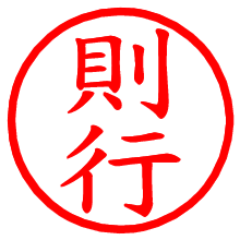 [朱肉の色]を選び、入力窓に“則行”と入力して[生成]ボタンを押すと、印影が更新され、リンクから電子印鑑(デジタル印影)がダウンロードできます。 電子印鑑「則行」の作り方文字表示が変なときや、文字バランスが悪いときは[字形切替]のチェックボックスでON/OFFを切り替え[生成]しなおしてください。 生成される画像は通常の印影「則行.png」と、にじみを表現した少し太めの印影「則行B.png」の背面透過PNG形式2種と、鮮明なPDF形式の印影「則行.pdf」の計3種類です。 朱肉の微妙な色の違いを7色で表現しました。デフォルト(左端)は、JISが定めた朱肉の色のマンセル値(7.5R 5/14)をRGB値(217,66,54)に変換したものになっています。 「電子透かし」にチェックを入れて[生成]ボタンを押すと、タイムスタンプを電子透かしとして埋め込んだセキュアな電子印鑑が作れます。詳細は別ページの「タイムスタンプと電子透かし」でご覧ください。 則行さんの日付印が作れます。「日付スタンプメーカー」は、社内向けの書類に利用されることの多い日付印(データ印)が無料で作れるWebアプリケーションです。中段に日付が入り、上段と下段は、ともに8文字まで文字が入ります。 ![]() 古代文字で落款印が作れます。「落款スタンプメーカー」で作品を引き立たせる落款印が作れます。