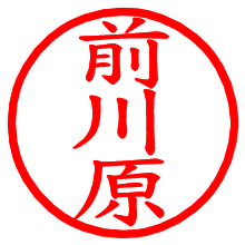 [朱肉の色]を選び、入力窓に“前川原”と入力して[生成]ボタンを押すと、印影が更新され、リンクから電子印鑑(デジタル印影)がダウンロードできます。 電子印鑑「前川原」の作り方文字表示が変なときや、文字バランスが悪いときは[字形切替]のチェックボックスでON/OFFを切り替え[生成]しなおしてください。 生成される画像は通常の印影「前川原.png」と、にじみを表現した少し太めの印影「前川原B.png」の背面透過PNG形式2種と、鮮明なPDF形式の印影「前川原.pdf」の計3種類です。 朱肉の微妙な色の違いを7色で表現しました。デフォルト(左端)は、JISが定めた朱肉の色のマンセル値(7.5R 5/14)をRGB値(217,66,54)に変換したものになっています。 「電子透かし」にチェックを入れて[生成]ボタンを押すと、タイムスタンプを電子透かしとして埋め込んだセキュアな電子印鑑が作れます。詳細は別ページの「タイムスタンプと電子透かし」でご覧ください。 前川原さんの日付印が作れます。「日付スタンプメーカー」は、社内向けの書類に利用されることの多い日付印(データ印)が無料で作れるWebアプリケーションです。中段に日付が入り、上段と下段は、ともに8文字まで文字が入ります。 ![]() 古代文字で落款印が作れます。「落款スタンプメーカー」で作品を引き立たせる落款印が作れます。