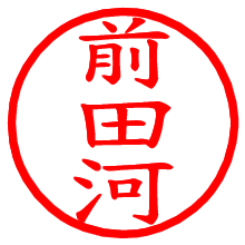 [朱肉の色]を選び、入力窓に“前田河”と入力して[生成]ボタンを押すと、印影が更新され、リンクから電子印鑑(デジタル印影)がダウンロードできます。 電子印鑑「前田河」の作り方文字表示が変なときや、文字バランスが悪いときは[字形切替]のチェックボックスでON/OFFを切り替え[生成]しなおしてください。 生成される画像は通常の印影「前田河.png」と、にじみを表現した少し太めの印影「前田河B.png」の背面透過PNG形式2種と、鮮明なPDF形式の印影「前田河.pdf」の計3種類です。 朱肉の微妙な色の違いを7色で表現しました。デフォルト(左端)は、JISが定めた朱肉の色のマンセル値(7.5R 5/14)をRGB値(217,66,54)に変換したものになっています。 「電子透かし」にチェックを入れて[生成]ボタンを押すと、タイムスタンプを電子透かしとして埋め込んだセキュアな電子印鑑が作れます。詳細は別ページの「タイムスタンプと電子透かし」でご覧ください。 前田河さんの日付印が作れます。「日付スタンプメーカー」は、社内向けの書類に利用されることの多い日付印(データ印)が無料で作れるWebアプリケーションです。中段に日付が入り、上段と下段は、ともに8文字まで文字が入ります。 ![]() 古代文字で落款印が作れます。「落款スタンプメーカー」で作品を引き立たせる落款印が作れます。