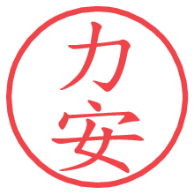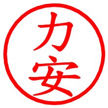 [朱肉の色]を選び、入力窓に“力安”と入力して[生成]ボタンを押すと、印影が更新され、リンクから電子印鑑(デジタル印影)がダウンロードできます。 電子印鑑「力安」の作り方文字表示が変なときや、文字バランスが悪いときは[字形切替]のチェックボックスでON/OFFを切り替え[生成]しなおしてください。 生成される画像は通常の印影「力安.png」と、にじみを表現した少し太めの印影「力安B.png」の背面透過PNG形式2種と、鮮明なPDF形式の印影「力安.pdf」の計3種類です。 朱肉の微妙な色の違いを7色で表現しました。デフォルト(左端)は、JISが定めた朱肉の色のマンセル値(7.5R 5/14)をRGB値(217,66,54)に変換したものになっています。 「電子透かし」にチェックを入れて[生成]ボタンを押すと、タイムスタンプを電子透かしとして埋め込んだセキュアな電子印鑑が作れます。詳細は別ページの「タイムスタンプと電子透かし」でご覧ください。 力安さんの日付印が作れます。「日付スタンプメーカー」は、社内向けの書類に利用されることの多い日付印(データ印)が無料で作れるWebアプリケーションです。中段に日付が入り、上段と下段は、ともに8文字まで文字が入ります。 ![]() 古代文字で落款印が作れます。「落款スタンプメーカー」で作品を引き立たせる落款印が作れます。