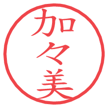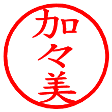 [朱肉の色]を選び、入力窓に“加々美”と入力して[生成]ボタンを押すと、印影が更新され、リンクから電子印鑑(デジタル印影)がダウンロードできます。 電子印鑑「加々美」の作り方文字表示が変なときや、文字バランスが悪いときは[字形切替]のチェックボックスでON/OFFを切り替え[生成]しなおしてください。 生成される画像は通常の印影「加々美.png」と、にじみを表現した少し太めの印影「加々美B.png」の背面透過PNG形式2種と、鮮明なPDF形式の印影「加々美.pdf」の計3種類です。 朱肉の微妙な色の違いを7色で表現しました。デフォルト(左端)は、JISが定めた朱肉の色のマンセル値(7.5R 5/14)をRGB値(217,66,54)に変換したものになっています。 「電子透かし」にチェックを入れて[生成]ボタンを押すと、タイムスタンプを電子透かしとして埋め込んだセキュアな電子印鑑が作れます。詳細は別ページの「タイムスタンプと電子透かし」でご覧ください。 加々美さんの日付印が作れます。「日付スタンプメーカー」は、社内向けの書類に利用されることの多い日付印(データ印)が無料で作れるWebアプリケーションです。中段に日付が入り、上段と下段は、ともに8文字まで文字が入ります。 ![]() 古代文字で落款印が作れます。「落款スタンプメーカー」で作品を引き立たせる落款印が作れます。