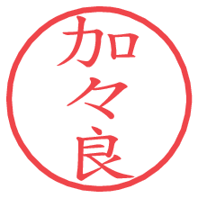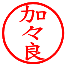 [朱肉の色]を選び、入力窓に“加々良”と入力して[生成]ボタンを押すと、印影が更新され、リンクから電子印鑑(デジタル印影)がダウンロードできます。 電子印鑑「加々良」の作り方文字表示が変なときや、文字バランスが悪いときは[字形切替]のチェックボックスでON/OFFを切り替え[生成]しなおしてください。 生成される画像は通常の印影「加々良.png」と、にじみを表現した少し太めの印影「加々良B.png」の背面透過PNG形式2種と、鮮明なPDF形式の印影「加々良.pdf」の計3種類です。 朱肉の微妙な色の違いを7色で表現しました。デフォルト(左端)は、JISが定めた朱肉の色のマンセル値(7.5R 5/14)をRGB値(217,66,54)に変換したものになっています。 「電子透かし」にチェックを入れて[生成]ボタンを押すと、タイムスタンプを電子透かしとして埋め込んだセキュアな電子印鑑が作れます。詳細は別ページの「タイムスタンプと電子透かし」でご覧ください。 加々良さんの日付印が作れます。「日付スタンプメーカー」は、社内向けの書類に利用されることの多い日付印(データ印)が無料で作れるWebアプリケーションです。中段に日付が入り、上段と下段は、ともに8文字まで文字が入ります。 ![]() 古代文字で落款印が作れます。「落款スタンプメーカー」で作品を引き立たせる落款印が作れます。