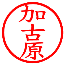 [朱肉の色]を選び、入力窓に“加古原”と入力して[生成]ボタンを押すと、印影が更新され、リンクから電子印鑑(デジタル印影)がダウンロードできます。 電子印鑑「加古原」の作り方文字表示が変なときや、文字バランスが悪いときは[字形切替]のチェックボックスでON/OFFを切り替え[生成]しなおしてください。 生成される画像は通常の印影「加古原.png」と、にじみを表現した少し太めの印影「加古原B.png」の背面透過PNG形式2種と、鮮明なPDF形式の印影「加古原.pdf」の計3種類です。 朱肉の微妙な色の違いを7色で表現しました。デフォルト(左端)は、JISが定めた朱肉の色のマンセル値(7.5R 5/14)をRGB値(217,66,54)に変換したものになっています。 「電子透かし」にチェックを入れて[生成]ボタンを押すと、タイムスタンプを透かしとして埋め込んだセキュアな電子印鑑が作れます。詳細は別ページの「電子透かしとタイムスタンプ」でご覧ください。 加古原さんの日付印が作れます。「日付スタンプメーカー」は、社内向けの書類に利用されることの多い日付印(データ印)が無料で作れるWebアプリケーションです。中段に日付が入り、上段と下段は、ともに8文字まで文字が入ります。 ![]() 古代文字で落款印が作れます。「落款スタンプメーカー」で作品を引き立たせる落款印が作れます。