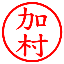 [朱肉の色]を選び、入力窓に“加村”と入力して[生成]ボタンを押すと、印影が更新され、リンクから電子印鑑(デジタル印影)がダウンロードできます。 電子印鑑「加村」の作り方文字表示が変なときや、文字バランスが悪いときは[字形切替]のチェックボックスでON/OFFを切り替え[生成]しなおしてください。 生成される画像は通常の印影「加村.png」と、にじみを表現した少し太めの印影「加村B.png」の背面透過PNG形式2種と、鮮明なPDF形式の印影「加村.pdf」の計3種類です。 朱肉の微妙な色の違いを7色で表現しました。デフォルト(左端)は、JISが定めた朱肉の色のマンセル値(7.5R 5/14)をRGB値(217,66,54)に変換したものになっています。 「電子透かし」にチェックを入れて[生成]ボタンを押すと、タイムスタンプを電子透かしとして埋め込んだセキュアな電子印鑑が作れます。詳細は別ページの「タイムスタンプと電子透かし」でご覧ください。 加村さんの日付印が作れます。「日付スタンプメーカー」は、社内向けの書類に利用されることの多い日付印(データ印)が無料で作れるWebアプリケーションです。中段に日付が入り、上段と下段は、ともに8文字まで文字が入ります。 ![]() 古代文字で落款印が作れます。「落款スタンプメーカー」で作品を引き立たせる落款印が作れます。