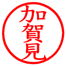 [朱肉の色]を選び、入力窓に“加賀見”と入力して[生成]ボタンを押すと、印影が更新され、リンクから電子印鑑(デジタル印影)がダウンロードできます。 電子印鑑「加賀見」の作り方文字表示が変なときや、文字バランスが悪いときは[字形切替]のチェックボックスでON/OFFを切り替え[生成]しなおしてください。 生成される画像は通常の印影「加賀見.png」と、にじみを表現した少し太めの印影「加賀見B.png」の背面透過PNG形式2種と、鮮明なPDF形式の印影「加賀見.pdf」の計3種類です。 朱肉の微妙な色の違いを7色で表現しました。デフォルト(左端)は、JISが定めた朱肉の色のマンセル値(7.5R 5/14)をRGB値(217,66,54)に変換したものになっています。 「電子透かし」にチェックを入れて[生成]ボタンを押すと、タイムスタンプを電子透かしとして埋め込んだセキュアな電子印鑑が作れます。詳細は別ページの「タイムスタンプと電子透かし」でご覧ください。 加賀見さんの日付印が作れます。「日付スタンプメーカー」は、社内向けの書類に利用されることの多い日付印(データ印)が無料で作れるWebアプリケーションです。中段に日付が入り、上段と下段は、ともに8文字まで文字が入ります。 ![]() 古代文字で落款印が作れます。「落款スタンプメーカー」で作品を引き立たせる落款印が作れます。