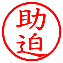 [朱肉の色]を選び、入力窓に“助迫”と入力して[生成]ボタンを押すと、印影が更新され、リンクから電子印鑑(デジタル印影)がダウンロードできます。 電子印鑑「助迫」の作り方文字表示が変なときや、文字バランスが悪いときは[字形切替]のチェックボックスでON/OFFを切り替え[生成]しなおしてください。 生成される画像は通常の印影「助迫.png」と、にじみを表現した少し太めの印影「助迫B.png」の背面透過PNG形式2種と、鮮明なPDF形式の印影「助迫.pdf」の計3種類です。 朱肉の微妙な色の違いを7色で表現しました。デフォルト(左端)は、JISが定めた朱肉の色のマンセル値(7.5R 5/14)をRGB値(217,66,54)に変換したものになっています。 「電子透かし」にチェックを入れて[生成]ボタンを押すと、タイムスタンプを電子透かしとして埋め込んだセキュアな電子印鑑が作れます。詳細は別ページの「タイムスタンプと電子透かし」でご覧ください。 助迫さんの日付印が作れます。「日付スタンプメーカー」は、社内向けの書類に利用されることの多い日付印(データ印)が無料で作れるWebアプリケーションです。中段に日付が入り、上段と下段は、ともに8文字まで文字が入ります。 ![]() 古代文字で落款印が作れます。「落款スタンプメーカー」で作品を引き立たせる落款印が作れます。