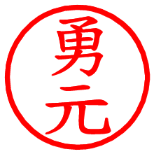 [朱肉の色]を選び、入力窓に“勇元”と入力して[生成]ボタンを押すと、印影が更新され、リンクから電子印鑑(デジタル印影)がダウンロードできます。 電子印鑑「勇元」の作り方文字表示が変なときや、文字バランスが悪いときは[字形切替]のチェックボックスでON/OFFを切り替え[生成]しなおしてください。 生成される画像は通常の印影「勇元.png」と、にじみを表現した少し太めの印影「勇元B.png」の背面透過PNG形式2種と、鮮明なPDF形式の印影「勇元.pdf」の計3種類です。 朱肉の微妙な色の違いを7色で表現しました。デフォルト(左端)は、JISが定めた朱肉の色のマンセル値(7.5R 5/14)をRGB値(217,66,54)に変換したものになっています。 「電子透かし」にチェックを入れて[生成]ボタンを押すと、タイムスタンプを電子透かしとして埋め込んだセキュアな電子印鑑が作れます。詳細は別ページの「タイムスタンプと電子透かし」でご覧ください。 勇元さんの日付印が作れます。「日付スタンプメーカー」は、社内向けの書類に利用されることの多い日付印(データ印)が無料で作れるWebアプリケーションです。中段に日付が入り、上段と下段は、ともに8文字まで文字が入ります。 ![]() 古代文字で落款印が作れます。「落款スタンプメーカー」で作品を引き立たせる落款印が作れます。