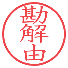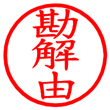 [朱肉の色]を選び、入力窓に“勘解由”と入力して[生成]ボタンを押すと、印影が更新され、リンクから電子印鑑(デジタル印影)がダウンロードできます。 電子印鑑「勘解由」の作り方文字表示が変なときや、文字バランスが悪いときは[字形切替]のチェックボックスでON/OFFを切り替え[生成]しなおしてください。 生成される画像は通常の印影「勘解由.png」と、にじみを表現した少し太めの印影「勘解由B.png」の背面透過PNG形式2種と、鮮明なPDF形式の印影「勘解由.pdf」の計3種類です。 朱肉の微妙な色の違いを7色で表現しました。デフォルト(左端)は、JISが定めた朱肉の色のマンセル値(7.5R 5/14)をRGB値(217,66,54)に変換したものになっています。 「電子透かし」にチェックを入れて[生成]ボタンを押すと、タイムスタンプを電子透かしとして埋め込んだセキュアな電子印鑑が作れます。詳細は別ページの「タイムスタンプと電子透かし」でご覧ください。 勘解由さんの日付印が作れます。「日付スタンプメーカー」は、社内向けの書類に利用されることの多い日付印(データ印)が無料で作れるWebアプリケーションです。中段に日付が入り、上段と下段は、ともに8文字まで文字が入ります。 ![]() 古代文字で落款印が作れます。「落款スタンプメーカー」で作品を引き立たせる落款印が作れます。