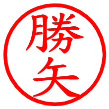 [朱肉の色]を選び、入力窓に“勝矢”と入力して[生成]ボタンを押すと、印影が更新され、リンクから電子印鑑(デジタル印影)がダウンロードできます。 電子印鑑「勝矢」の作り方文字表示が変なときや、文字バランスが悪いときは[字形切替]のチェックボックスでON/OFFを切り替え[生成]しなおしてください。 生成される画像は通常の印影「勝矢.png」と、にじみを表現した少し太めの印影「勝矢B.png」の背面透過PNG形式2種と、鮮明なPDF形式の印影「勝矢.pdf」の計3種類です。 朱肉の微妙な色の違いを7色で表現しました。デフォルト(左端)は、JISが定めた朱肉の色のマンセル値(7.5R 5/14)をRGB値(217,66,54)に変換したものになっています。 「電子透かし」にチェックを入れて[生成]ボタンを押すと、タイムスタンプを電子透かしとして埋め込んだセキュアな電子印鑑が作れます。詳細は別ページの「タイムスタンプと電子透かし」でご覧ください。 勝矢さんの日付印が作れます。「日付スタンプメーカー」は、社内向けの書類に利用されることの多い日付印(データ印)が無料で作れるWebアプリケーションです。中段に日付が入り、上段と下段は、ともに8文字まで文字が入ります。 ![]() 古代文字で落款印が作れます。「落款スタンプメーカー」で作品を引き立たせる落款印が作れます。