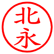 [朱肉の色]を選び、入力窓に“北永”と入力して[生成]ボタンを押すと、印影が更新され、リンクから電子印鑑(デジタル印影)がダウンロードできます。 電子印鑑「北永」の作り方文字表示が変なときや、文字バランスが悪いときは[字形切替]のチェックボックスでON/OFFを切り替え[生成]しなおしてください。 生成される画像は通常の印影「北永.png」と、にじみを表現した少し太めの印影「北永B.png」の背面透過PNG形式2種と、鮮明なPDF形式の印影「北永.pdf」の計3種類です。 朱肉の微妙な色の違いを7色で表現しました。デフォルト(左端)は、JISが定めた朱肉の色のマンセル値(7.5R 5/14)をRGB値(217,66,54)に変換したものになっています。 「電子透かし」にチェックを入れて[生成]ボタンを押すと、タイムスタンプを電子透かしとして埋め込んだセキュアな電子印鑑が作れます。詳細は別ページの「タイムスタンプと電子透かし」でご覧ください。 北永さんの日付印が作れます。「日付スタンプメーカー」は、社内向けの書類に利用されることの多い日付印(データ印)が無料で作れるWebアプリケーションです。中段に日付が入り、上段と下段は、ともに8文字まで文字が入ります。 ![]() 古代文字で落款印が作れます。「落款スタンプメーカー」で作品を引き立たせる落款印が作れます。