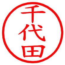 [朱肉の色]を選び、入力窓に“千代田”と入力して[生成]ボタンを押すと、印影が更新され、リンクから電子印鑑(デジタル印影)がダウンロードできます。 電子印鑑「千代田」の作り方文字表示が変なときや、文字バランスが悪いときは[字形切替]のチェックボックスでON/OFFを切り替え[生成]しなおしてください。 生成される画像は通常の印影「千代田.png」と、にじみを表現した少し太めの印影「千代田B.png」の背面透過PNG形式2種と、鮮明なPDF形式の印影「千代田.pdf」の計3種類です。 朱肉の微妙な色の違いを7色で表現しました。デフォルト(左端)は、JISが定めた朱肉の色のマンセル値(7.5R 5/14)をRGB値(217,66,54)に変換したものになっています。 「電子透かし」にチェックを入れて[生成]ボタンを押すと、タイムスタンプを透かしとして埋め込んだセキュアな電子印鑑が作れます。詳細は別ページの「電子透かしとタイムスタンプ」でご覧ください。 千代田さんの日付印が作れます。「日付スタンプメーカー」は、社内向けの書類に利用されることの多い日付印(データ印)が無料で作れるWebアプリケーションです。中段に日付が入り、上段と下段は、ともに8文字まで文字が入ります。 ![]() 古代文字で落款印が作れます。「落款スタンプメーカー」で作品を引き立たせる落款印が作れます。