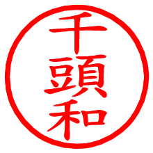 [朱肉の色]を選び、入力窓に“千頭和”と入力して[生成]ボタンを押すと、印影が更新され、リンクから電子印鑑(デジタル印影)がダウンロードできます。 電子印鑑「千頭和」の作り方文字表示が変なときや、文字バランスが悪いときは[字形切替]のチェックボックスでON/OFFを切り替え[生成]しなおしてください。 生成される画像は通常の印影「千頭和.png」と、にじみを表現した少し太めの印影「千頭和B.png」の背面透過PNG形式2種と、鮮明なPDF形式の印影「千頭和.pdf」の計3種類です。 朱肉の微妙な色の違いを7色で表現しました。デフォルト(左端)は、JISが定めた朱肉の色のマンセル値(7.5R 5/14)をRGB値(217,66,54)に変換したものになっています。 「電子透かし」にチェックを入れて[生成]ボタンを押すと、タイムスタンプを電子透かしとして埋め込んだセキュアな電子印鑑が作れます。詳細は別ページの「タイムスタンプと電子透かし」でご覧ください。 千頭和さんの日付印が作れます。「日付スタンプメーカー」は、社内向けの書類に利用されることの多い日付印(データ印)が無料で作れるWebアプリケーションです。中段に日付が入り、上段と下段は、ともに8文字まで文字が入ります。 ![]() 古代文字で落款印が作れます。「落款スタンプメーカー」で作品を引き立たせる落款印が作れます。
