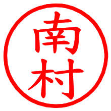 [朱肉の色]を選び、入力窓に“南村”と入力して[生成]ボタンを押すと、印影が更新され、リンクから電子印鑑(デジタル印影)がダウンロードできます。 電子印鑑「南村」の作り方文字表示が変なときや、文字バランスが悪いときは[字形切替]のチェックボックスでON/OFFを切り替え[生成]しなおしてください。 生成される画像は通常の印影「南村.png」と、にじみを表現した少し太めの印影「南村B.png」の背面透過PNG形式2種と、鮮明なPDF形式の印影「南村.pdf」の計3種類です。 朱肉の微妙な色の違いを7色で表現しました。デフォルト(左端)は、JISが定めた朱肉の色のマンセル値(7.5R 5/14)をRGB値(217,66,54)に変換したものになっています。 「電子透かし」にチェックを入れて[生成]ボタンを押すと、タイムスタンプを電子透かしとして埋め込んだセキュアな電子印鑑が作れます。詳細は別ページの「タイムスタンプと電子透かし」でご覧ください。 南村さんの日付印が作れます。「日付スタンプメーカー」は、社内向けの書類に利用されることの多い日付印(データ印)が無料で作れるWebアプリケーションです。中段に日付が入り、上段と下段は、ともに8文字まで文字が入ります。 ![]() 古代文字で落款印が作れます。「落款スタンプメーカー」で作品を引き立たせる落款印が作れます。