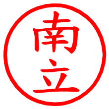[朱肉の色]を選び、入力窓に“南立”と入力して[生成]ボタンを押すと、印影が更新され、リンクから電子印鑑(デジタル印影)がダウンロードできます。 電子印鑑「南立」の作り方文字表示が変なときや、文字バランスが悪いときは[字形切替]のチェックボックスでON/OFFを切り替え[生成]しなおしてください。 生成される画像は通常の印影「南立.png」と、にじみを表現した少し太めの印影「南立B.png」の背面透過PNG形式2種と、鮮明なPDF形式の印影「南立.pdf」の計3種類です。 朱肉の微妙な色の違いを7色で表現しました。デフォルト(左端)は、JISが定めた朱肉の色のマンセル値(7.5R 5/14)をRGB値(217,66,54)に変換したものになっています。 「電子透かし」にチェックを入れて[生成]ボタンを押すと、タイムスタンプを電子透かしとして埋め込んだセキュアな電子印鑑が作れます。詳細は別ページの「タイムスタンプと電子透かし」でご覧ください。 南立さんの日付印が作れます。「日付スタンプメーカー」は、社内向けの書類に利用されることの多い日付印(データ印)が無料で作れるWebアプリケーションです。中段に日付が入り、上段と下段は、ともに8文字まで文字が入ります。 ![]() 古代文字で落款印が作れます。「落款スタンプメーカー」で作品を引き立たせる落款印が作れます。