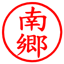 [朱肉の色]を選び、入力窓に“南郷”と入力して[生成]ボタンを押すと、印影が更新され、リンクから電子印鑑(デジタル印影)がダウンロードできます。 電子印鑑「南郷」の作り方文字表示が変なときや、文字バランスが悪いときは[字形切替]のチェックボックスでON/OFFを切り替え[生成]しなおしてください。 生成される画像は通常の印影「南郷.png」と、にじみを表現した少し太めの印影「南郷B.png」の背面透過PNG形式2種と、鮮明なPDF形式の印影「南郷.pdf」の計3種類です。 朱肉の微妙な色の違いを7色で表現しました。デフォルト(左端)は、JISが定めた朱肉の色のマンセル値(7.5R 5/14)をRGB値(217,66,54)に変換したものになっています。 「電子透かし」にチェックを入れて[生成]ボタンを押すと、タイムスタンプを電子透かしとして埋め込んだセキュアな電子印鑑が作れます。詳細は別ページの「タイムスタンプと電子透かし」でご覧ください。 南郷さんの日付印が作れます。「日付スタンプメーカー」は、社内向けの書類に利用されることの多い日付印(データ印)が無料で作れるWebアプリケーションです。中段に日付が入り、上段と下段は、ともに8文字まで文字が入ります。 ![]() 古代文字で落款印が作れます。「落款スタンプメーカー」で作品を引き立たせる落款印が作れます。