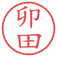 [朱肉の色]を選び、入力窓に“卯田”と入力して[生成]ボタンを押すと、印影が更新され、リンクから電子印鑑(デジタル印影)がダウンロードできます。 電子印鑑「卯田」の作り方文字表示が変なときや、文字バランスが悪いときは[字形切替]のチェックボックスでON/OFFを切り替え[生成]しなおしてください。 生成される画像は通常の印影「卯田.png」と、にじみを表現した少し太めの印影「卯田B.png」の背面透過PNG形式2種と、鮮明なPDF形式の印影「卯田.pdf」の計3種類です。 朱肉の微妙な色の違いを7色で表現しました。デフォルト(左端)は、JISが定めた朱肉の色のマンセル値(7.5R 5/14)をRGB値(217,66,54)に変換したものになっています。 「電子透かし」にチェックを入れて[生成]ボタンを押すと、タイムスタンプを電子透かしとして埋め込んだセキュアな電子印鑑が作れます。詳細は別ページの「タイムスタンプと電子透かし」でご覧ください。 卯田さんの日付印が作れます。「日付スタンプメーカー」は、社内向けの書類に利用されることの多い日付印(データ印)が無料で作れるWebアプリケーションです。中段に日付が入り、上段と下段は、ともに8文字まで文字が入ります。 ![]() 古代文字で落款印が作れます。「落款スタンプメーカー」で作品を引き立たせる落款印が作れます。
