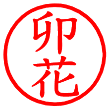 [朱肉の色]を選び、入力窓に“卯花”と入力して[生成]ボタンを押すと、印影が更新され、リンクから電子印鑑(デジタル印影)がダウンロードできます。 電子印鑑「卯花」の作り方文字表示が変なときや、文字バランスが悪いときは[字形切替]のチェックボックスでON/OFFを切り替え[生成]しなおしてください。 生成される画像は通常の印影「卯花.png」と、にじみを表現した少し太めの印影「卯花B.png」の背面透過PNG形式2種と、鮮明なPDF形式の印影「卯花.pdf」の計3種類です。 朱肉の微妙な色の違いを7色で表現しました。デフォルト(左端)は、JISが定めた朱肉の色のマンセル値(7.5R 5/14)をRGB値(217,66,54)に変換したものになっています。 「電子透かし」にチェックを入れて[生成]ボタンを押すと、タイムスタンプを透かしとして埋め込んだセキュアな電子印鑑が作れます。詳細は別ページの「電子透かしとタイムスタンプ」でご覧ください。 卯花さんの日付印が作れます。「日付スタンプメーカー」は、社内向けの書類に利用されることの多い日付印(データ印)が無料で作れるWebアプリケーションです。中段に日付が入り、上段と下段は、ともに8文字まで文字が入ります。 ![]() 古代文字で落款印が作れます。「落款スタンプメーカー」で作品を引き立たせる落款印が作れます。