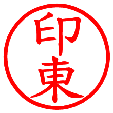 [朱肉の色]を選び、入力窓に“印東”と入力して[生成]ボタンを押すと、印影が更新され、リンクから電子印鑑(デジタル印影)がダウンロードできます。 電子印鑑「印東」の作り方文字表示が変なときや、文字バランスが悪いときは[字形切替]のチェックボックスでON/OFFを切り替え[生成]しなおしてください。 生成される画像は通常の印影「印東.png」と、にじみを表現した少し太めの印影「印東B.png」の背面透過PNG形式2種と、鮮明なPDF形式の印影「印東.pdf」の計3種類です。 朱肉の微妙な色の違いを7色で表現しました。デフォルト(左端)は、JISが定めた朱肉の色のマンセル値(7.5R 5/14)をRGB値(217,66,54)に変換したものになっています。 「電子透かし」にチェックを入れて[生成]ボタンを押すと、タイムスタンプを透かしとして埋め込んだセキュアな電子印鑑が作れます。詳細は別ページの「電子透かしとタイムスタンプ」でご覧ください。 印東さんの日付印が作れます。「日付スタンプメーカー」は、社内向けの書類に利用されることの多い日付印(データ印)が無料で作れるWebアプリケーションです。中段に日付が入り、上段と下段は、ともに8文字まで文字が入ります。 ![]() 古代文字で落款印が作れます。「落款スタンプメーカー」で作品を引き立たせる落款印が作れます。